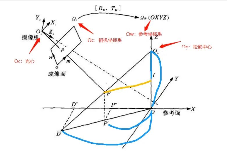 圖1 標(biāo)定模型 - OXYZ:參考坐標(biāo)系,根據(jù)投影裝置建立的: