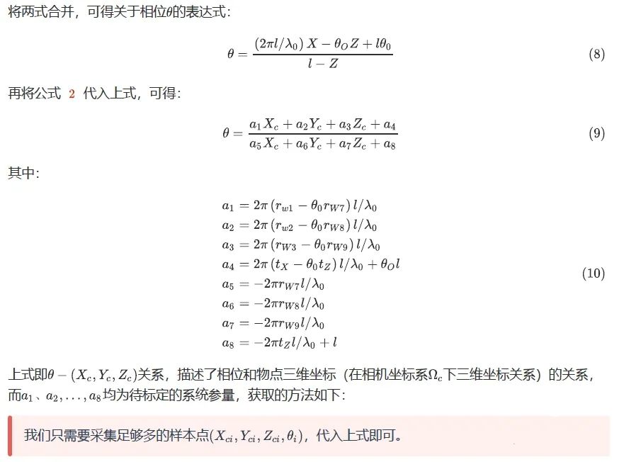 1、按照合適的角度固定好相機(jī)和投影儀,標(biāo)定過(guò)程中保證兩者相對(duì)靜止2、準(zhǔn)備好標(biāo)定板,可以使用打印的標(biāo)定板,也可以使用陶瓷標(biāo)定板3、投影儀關(guān)閉,相機(jī)拍攝標(biāo)定板圖片4、投影儀投射多頻相移圖片(僅投射y方向條紋),相機(jī)同時(shí)進(jìn)行拍攝5、改變系統(tǒng)相對(duì)標(biāo)定板的位姿,重復(fù)步驟3\4,拍攝>15組數(shù)據(jù)6、使用拍攝的標(biāo)定板圖片進(jìn)行相機(jī)標(biāo)定,獲得相機(jī)內(nèi)外參,并保存每個(gè)標(biāo)定板的角點(diǎn)位置信息